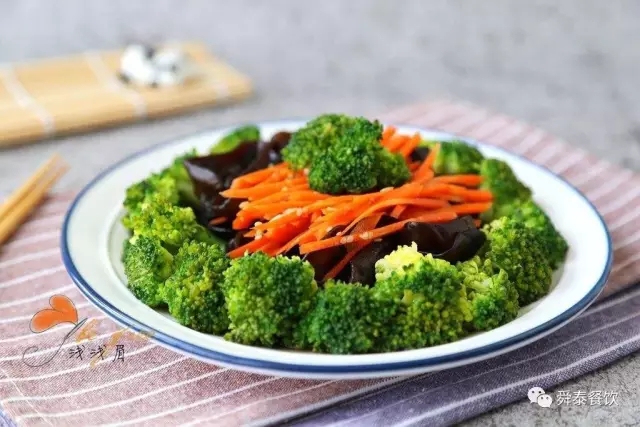 1.黑木耳用溫水泡發(fā)撕成小朵,西蘭花掰成小朵放鹽水中浸泡10分鐘撈出沖洗干凈,胡蘿卜去皮切絲;