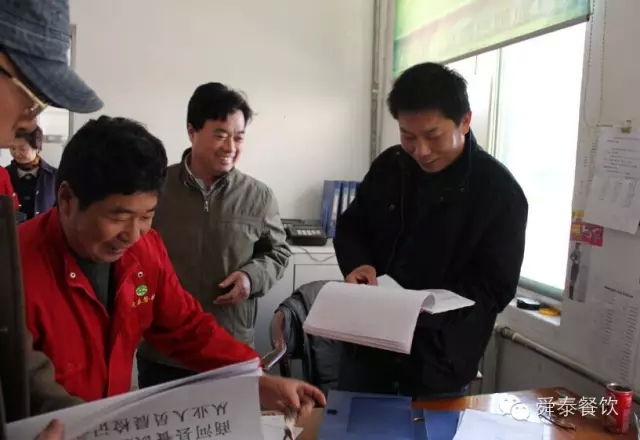 舜泰總部和食堂負(fù)責(zé)人在討論食堂改進(jìn)和服務(wù)完善方案